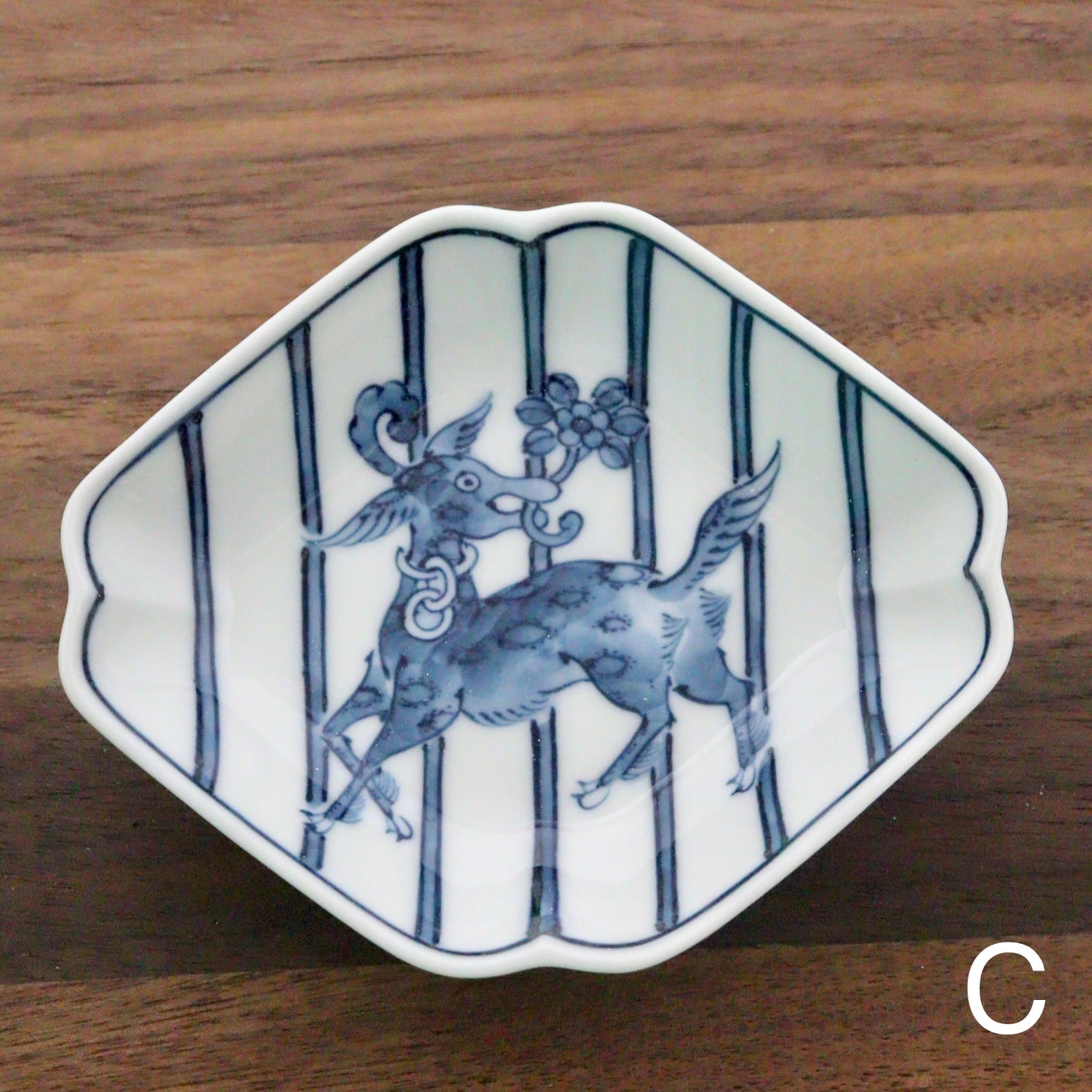 三川内焼窯元豆皿シリーズの菱形豆皿。