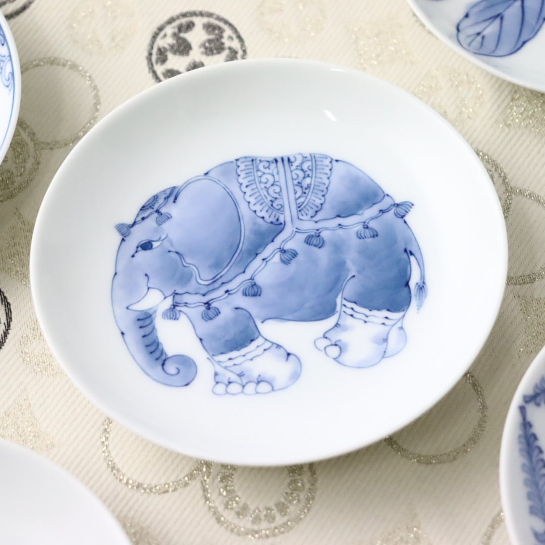 福よかな象を絵付けした小皿です。