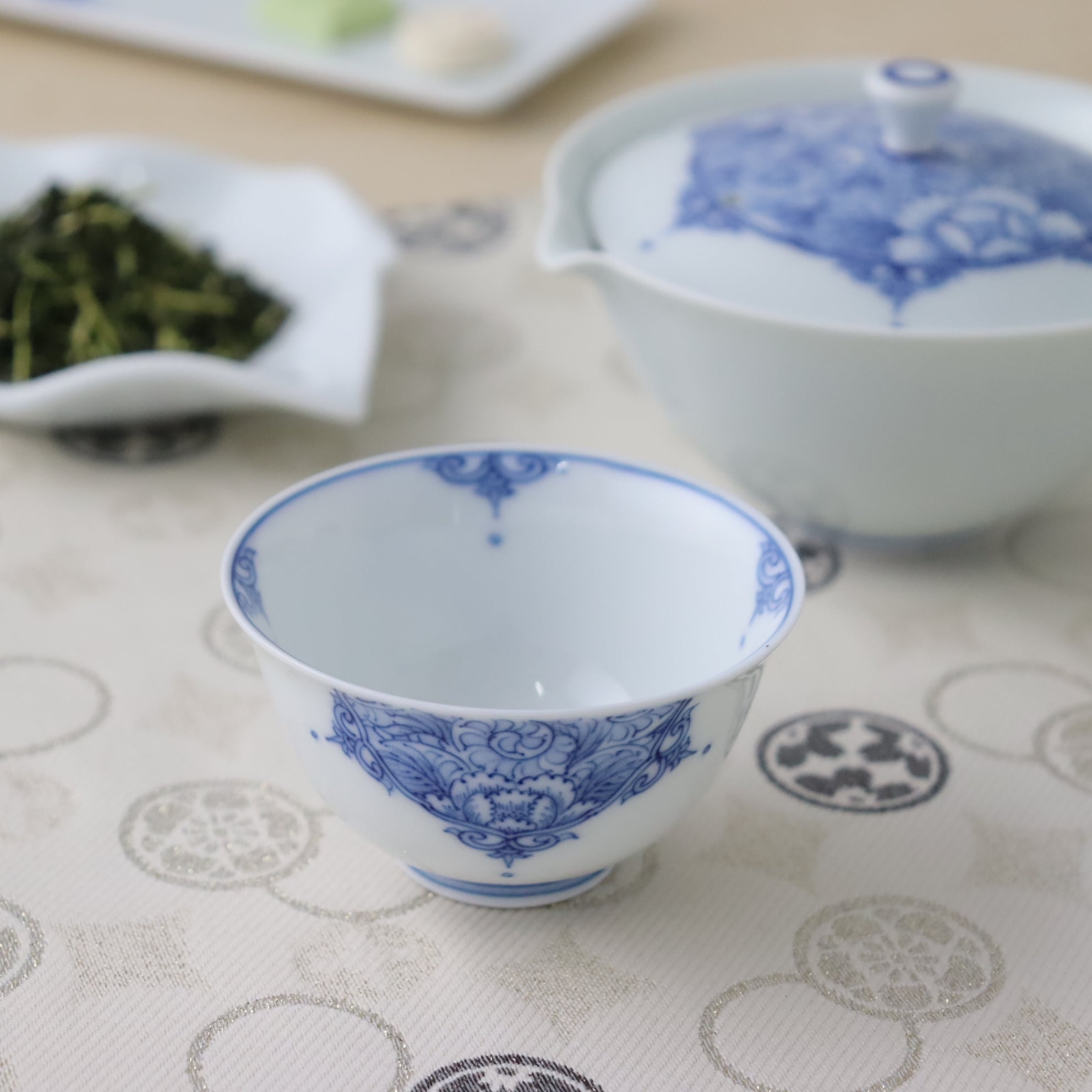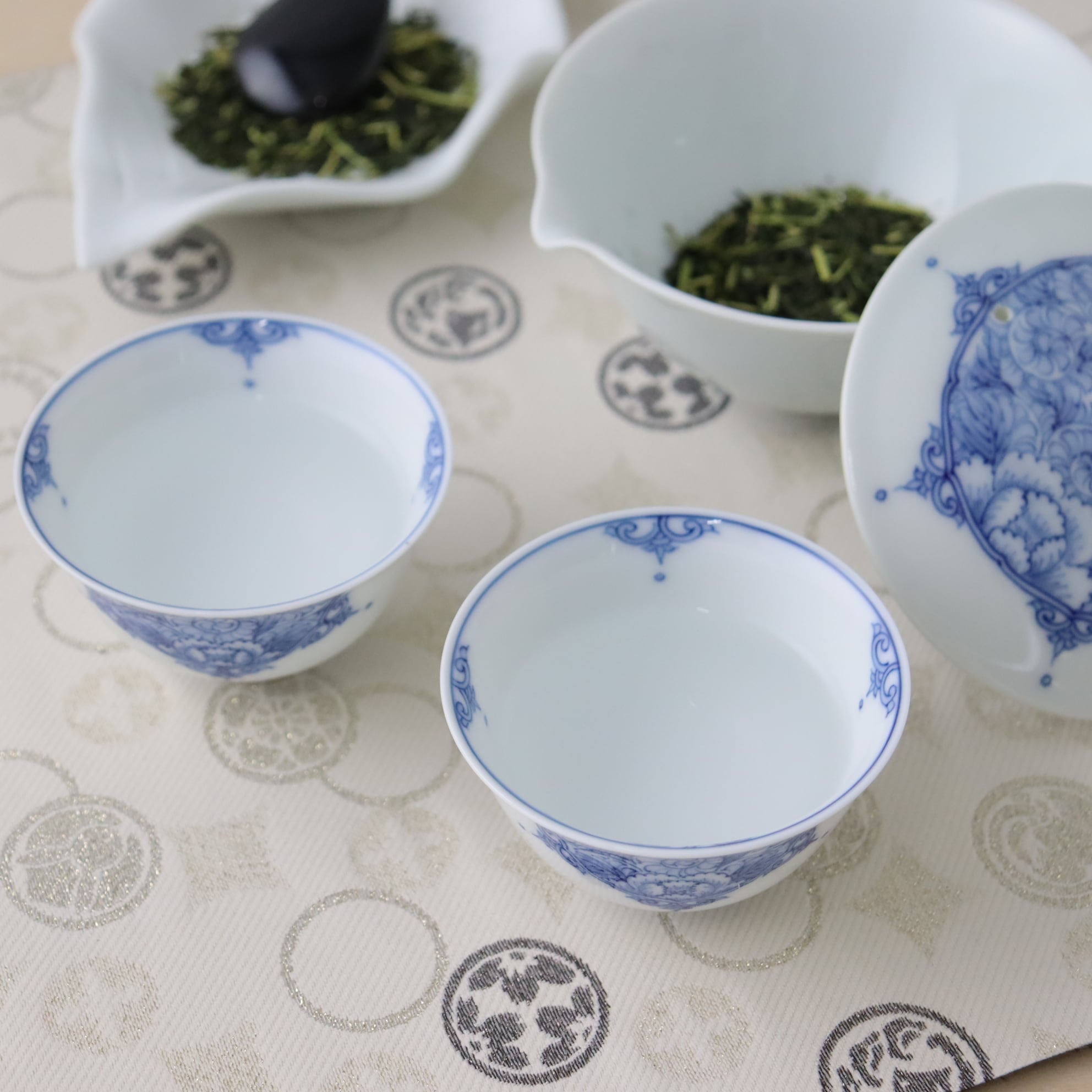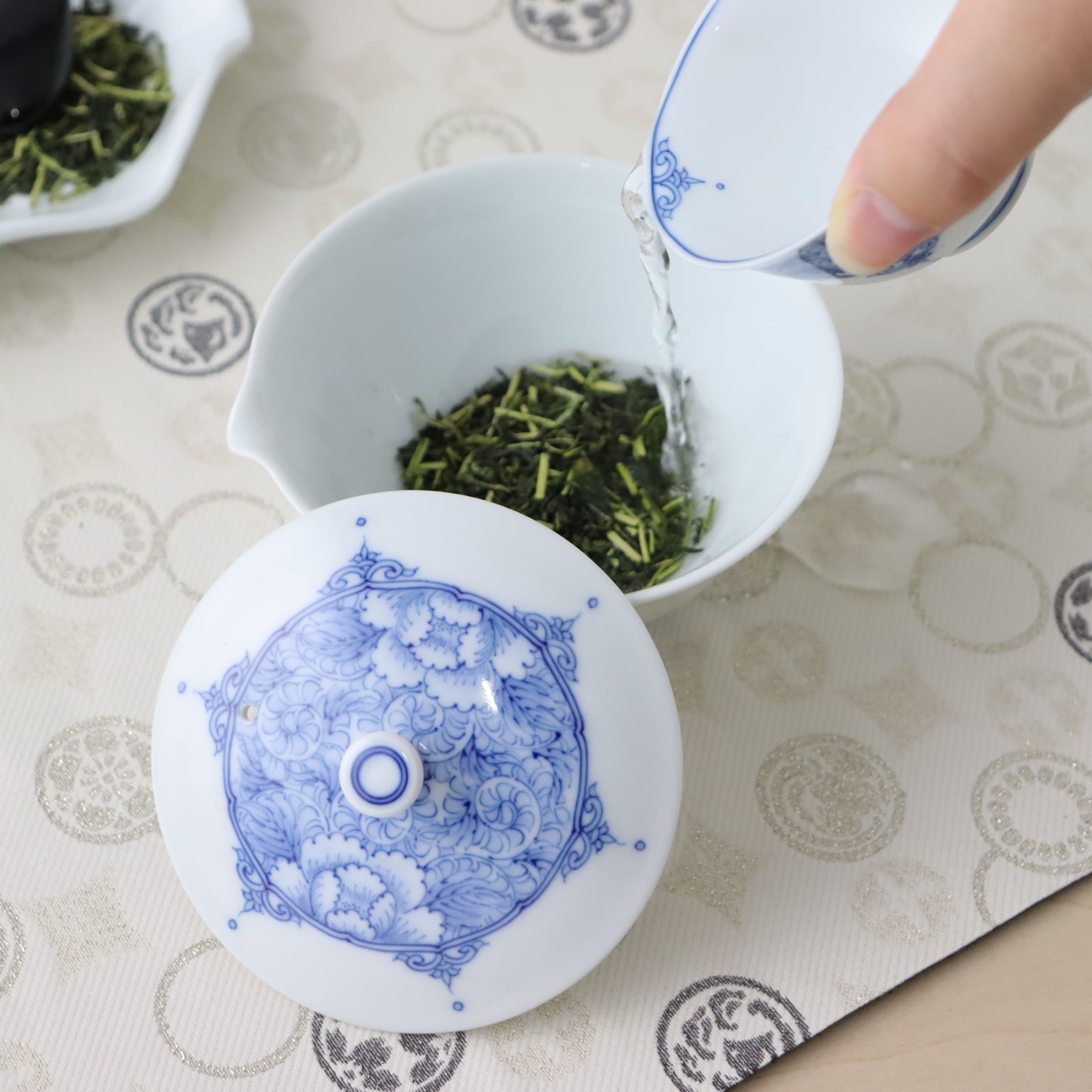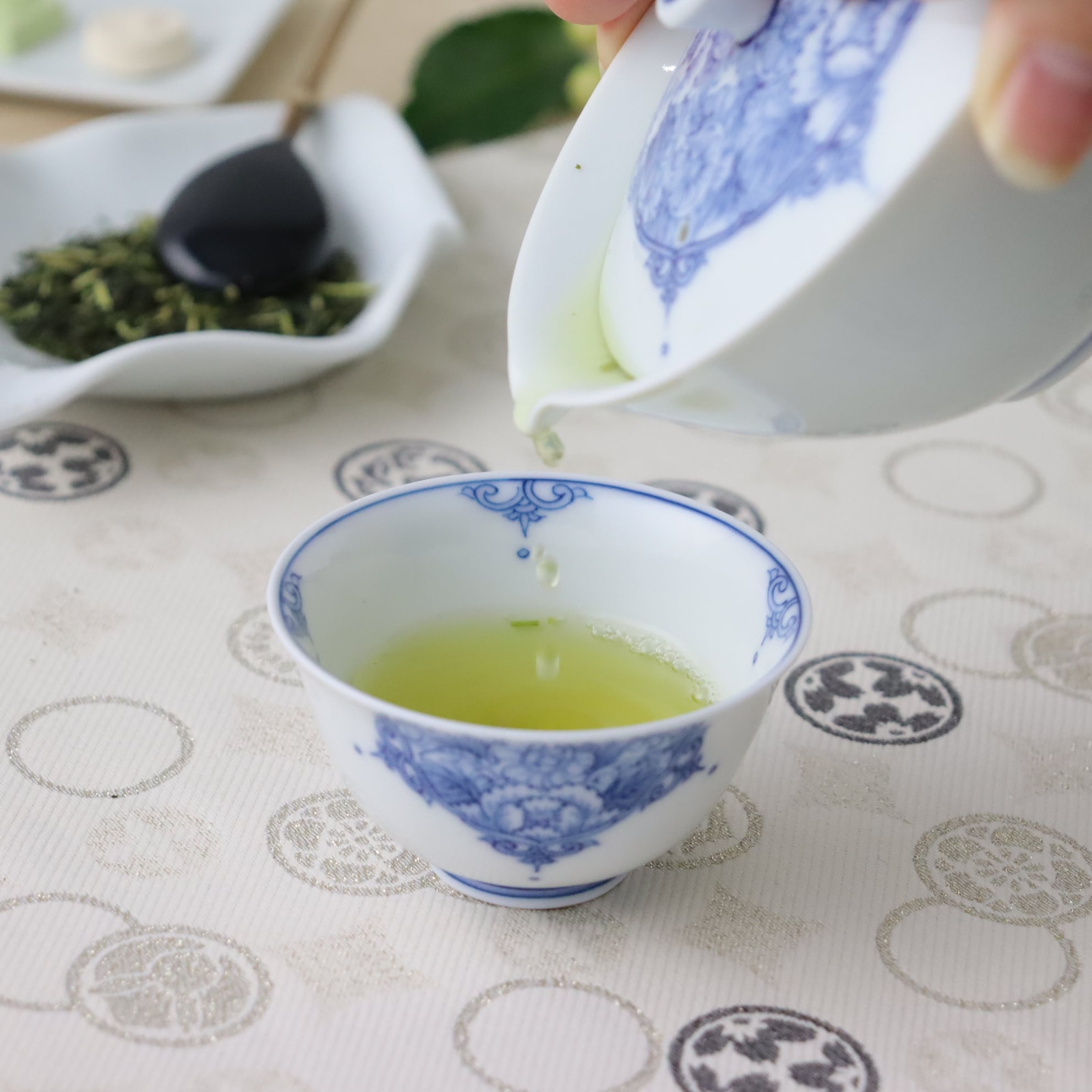この写真では、まず煎茶碗でお湯をさまして、緑茶を入れた宝瓶にその湯を注ぎお茶を出しています。最後の一滴にも旨みがあるようです。