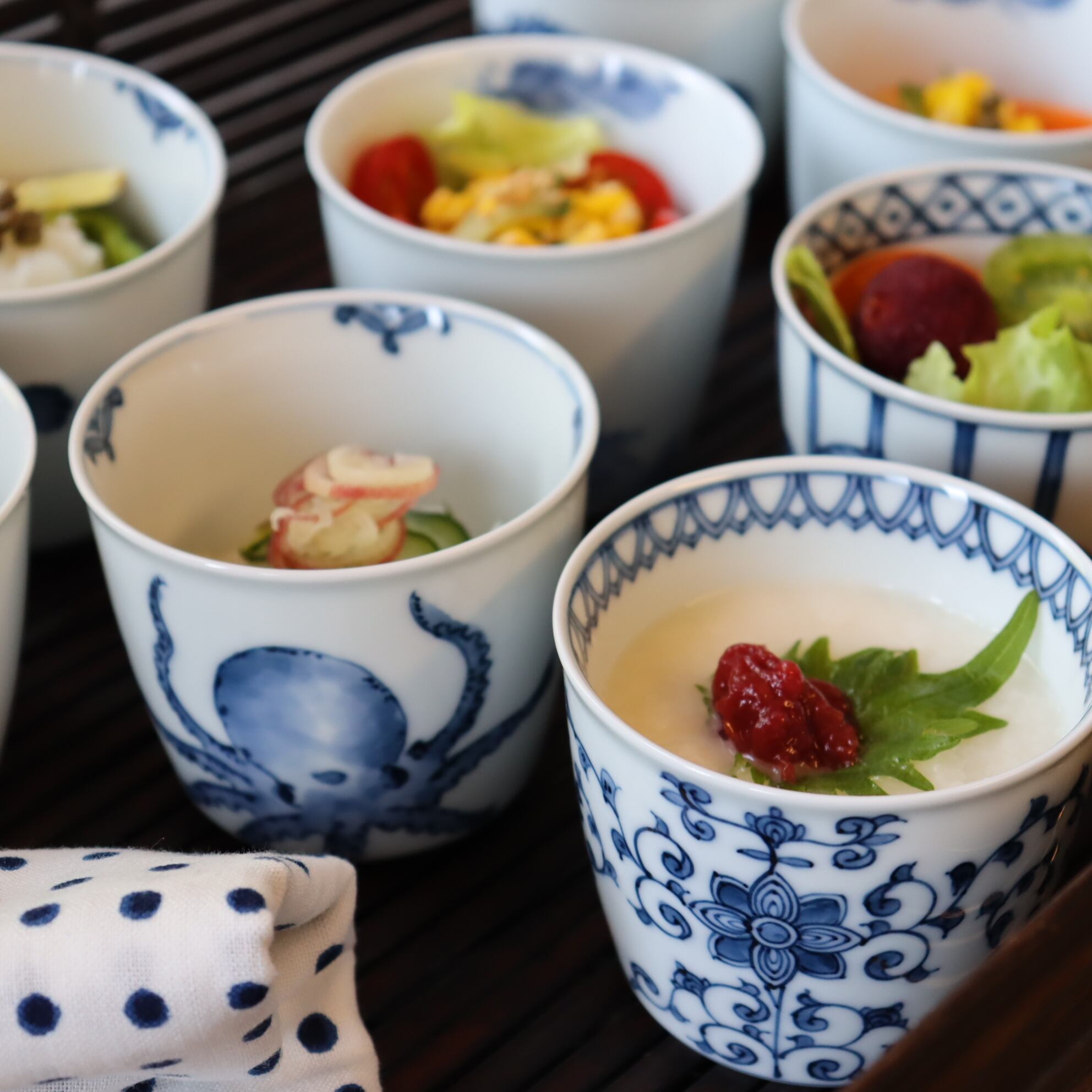 創作染付といい、卓越した筆使いを活かし現代の生活スタイルに合わせて制作している器。