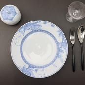 お肉、お魚のメイン料理・パスタなど多用にお使い頂けます。藤の花を絵付けした、少し深さのある渕(リム)のあるお皿です。